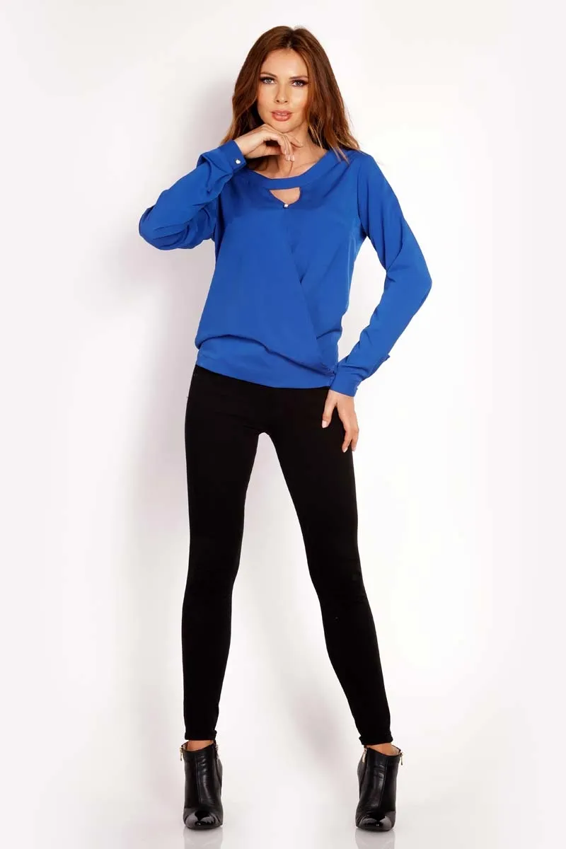 Niebieska Bluzka z Wycięciem przy Dekolcie