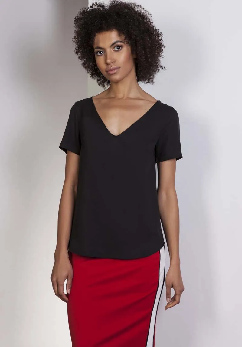 Czarna Casualowa Lekka Bluzka z Dekoltem w Serek