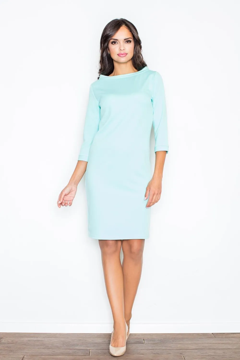 Miętowa Koktajlowa Sukienka z Rękawem 3/4