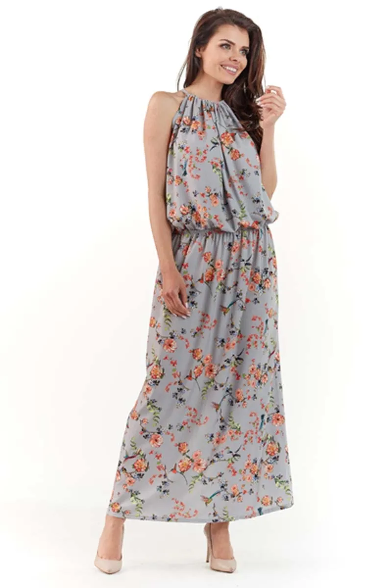 Ecru Rozkloszowana Sukienka z Ozdobnym Suwakiem