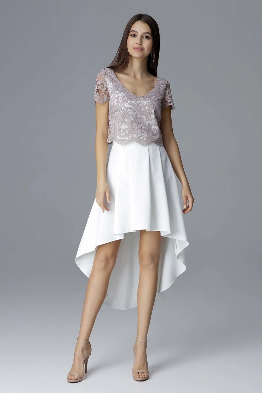 399,00 złEcru-Szary Dwuczęściowy Zestaw Koronkowa Bluzka + Asymetryczna Spódnica