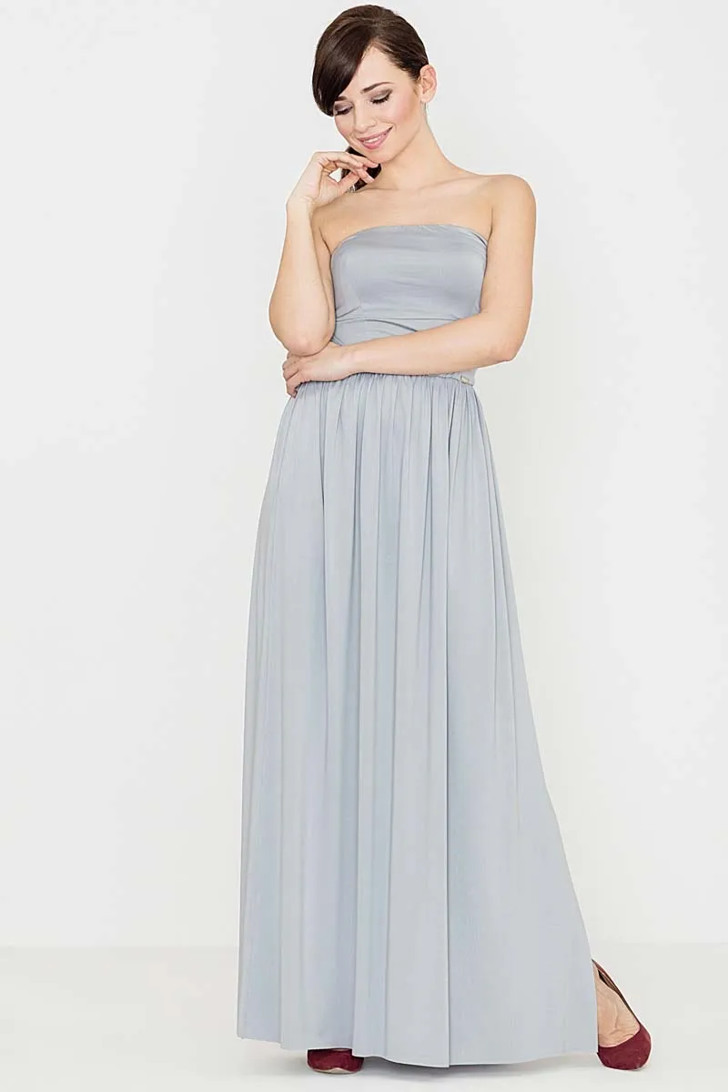 Szara Zmysłowa Gorsetowa Maxi Sukienka