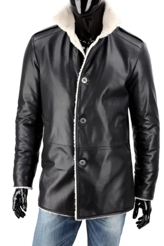 BILK950_1 - Płaszcz skórzany męski z podszyciem z kożucha eko DORJAN