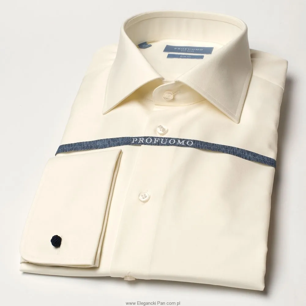 Śmietankowa / jasna ecru taliowana koszula (SLIM FIT) z półwłoskim kołnierzykiem, mankiety na spinki 37