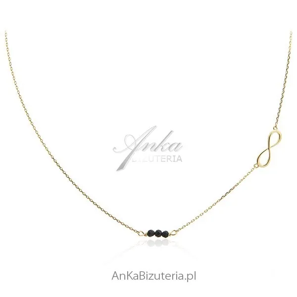 Naszyjnik srebrny pozłacany z nieskończonością i czarnymi onyksami