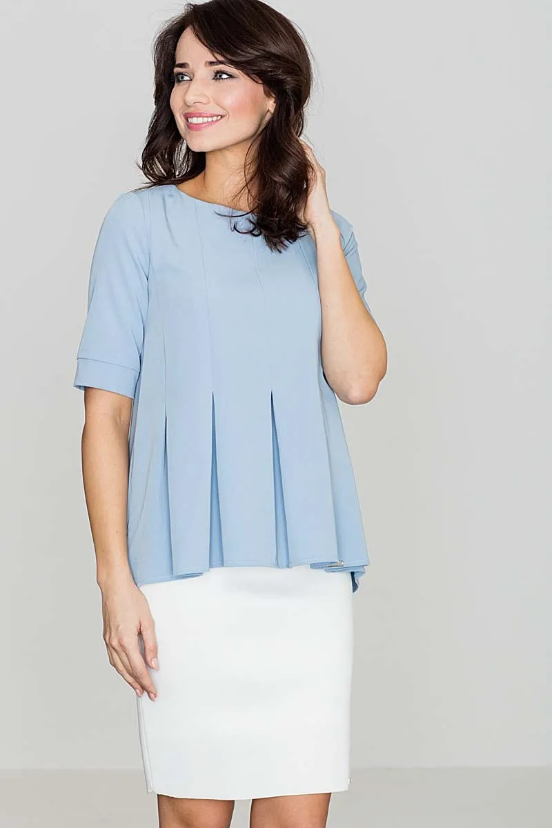 Elegancka Niebieska Bluzka z Kontrafałdami z Przodu