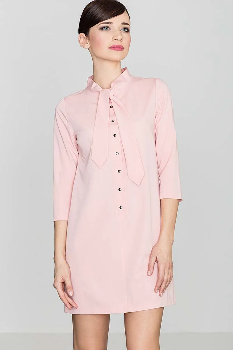 Uniwersalna Różowa Koszulowa Sukienka z Wiązaną pod Szyją Szarfą
