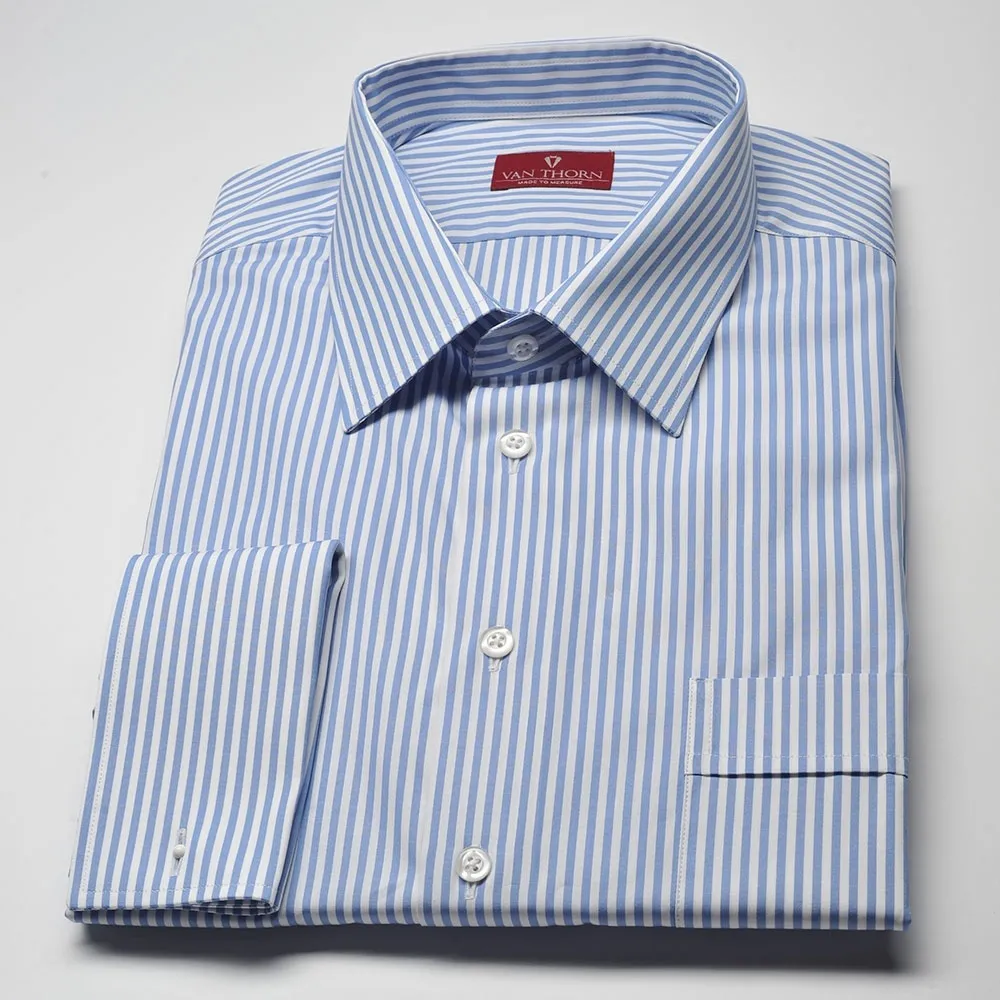 Elegancka koszula męska VAN THORN Slim Fit w biało niebieskie paski 44