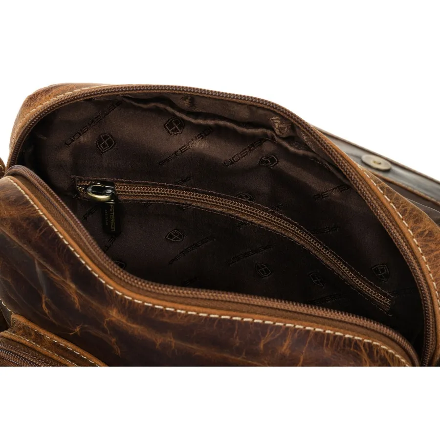 Mała, skórzana listonoszka męska w brązowym kolorze zamykana suwakiem PTN 1901-TUM Peterson