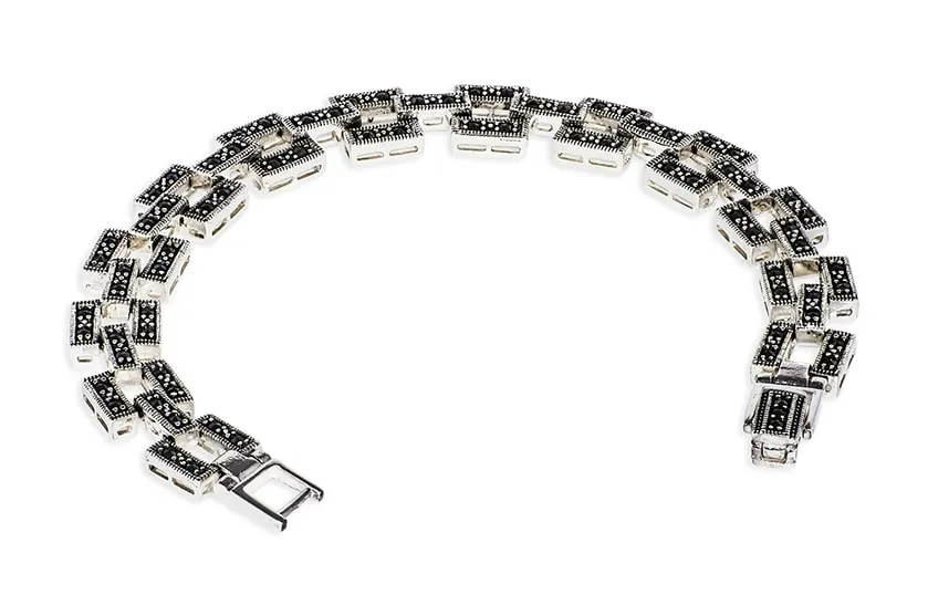 Elegancka srebrna bransoletka z szwajcarskimi markazytami