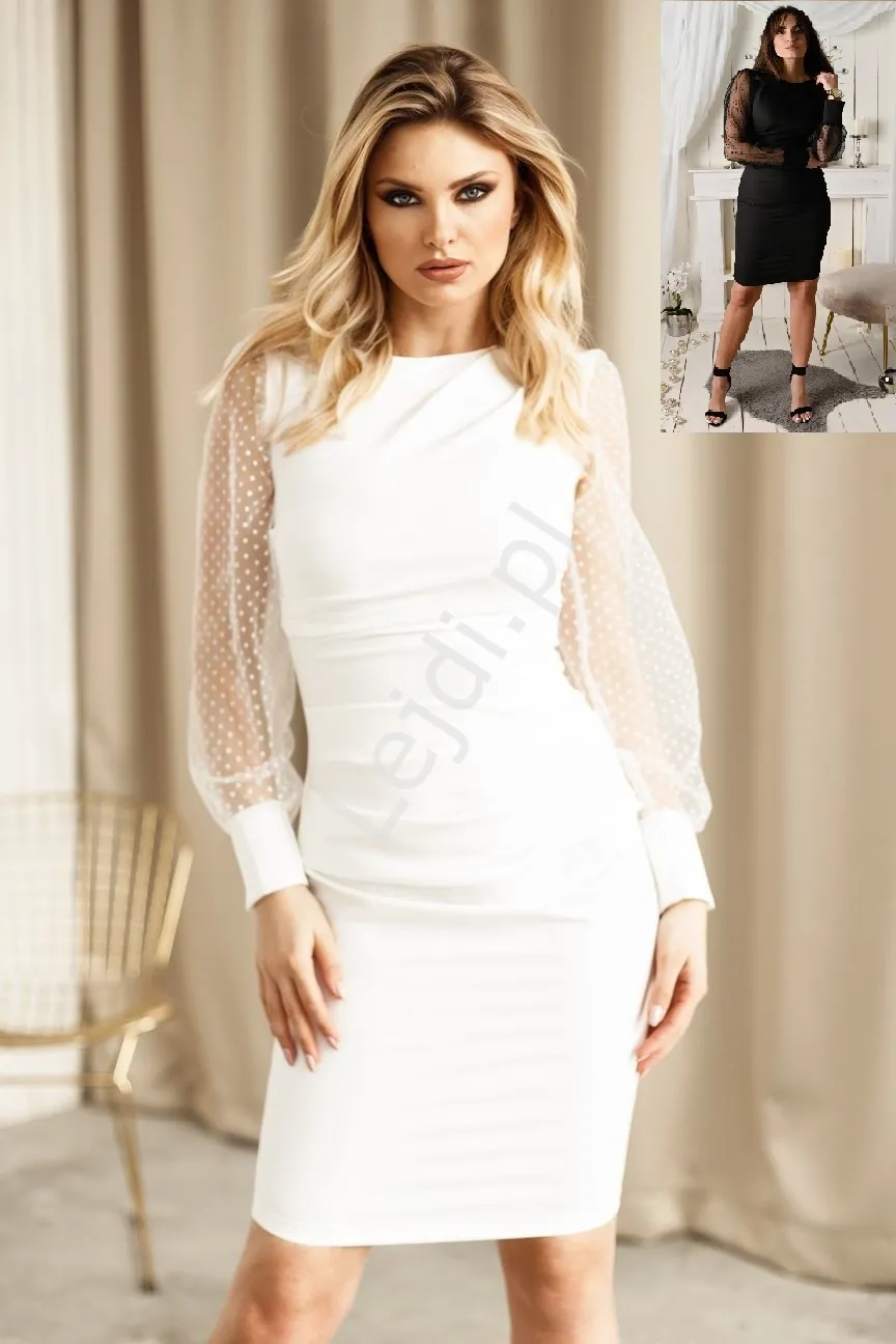 Sukienka wizytowa z rękawami w groszki m471 2 kolory