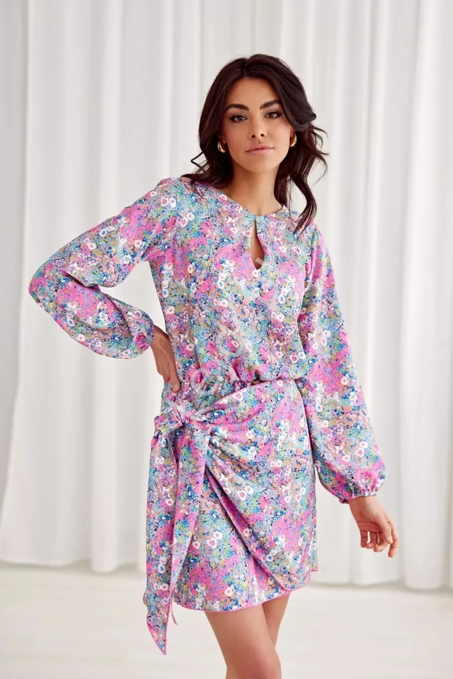 Elegancka sukienka w kwiaty fuksjowa 357 - 72