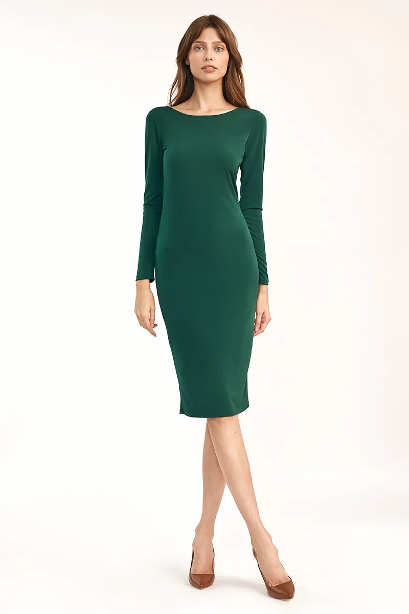 Dopasowana Sukienka z wycięciem na Plecach - Zielona