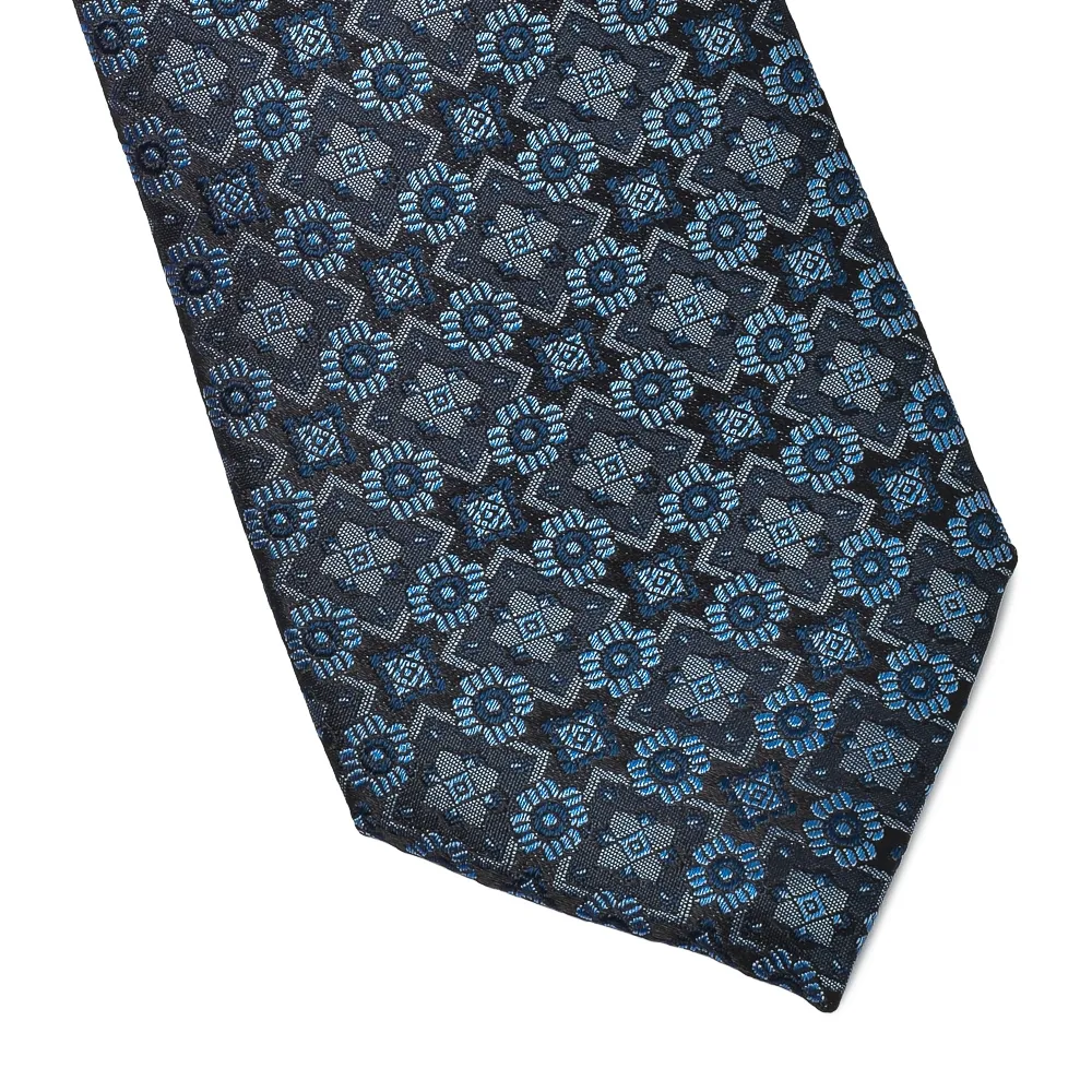 Granatowy krawat jedwabny w jaśniejszy niebieski wzór