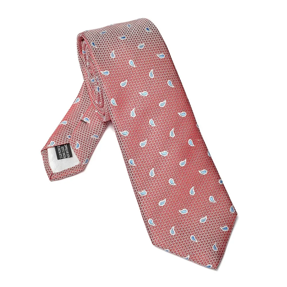 Elegancki DŁUGI czerwony krawat Van Thorn w błękitne paisley