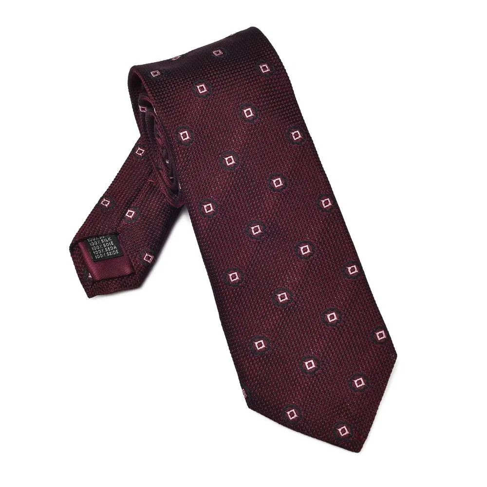 Elegancki granatowy krawat VAN THORN z grenadyny. Krawat wykonany jest z doskonałej jakości jedwabiu-grenadyny. Jest to prestiżowy, rzadko spotykany materiał tkany na wiekowych krosnach. Wzór krawata to czerwone kwadraty . Ten krawat będzie pasował do biznesowych i casualowych stylizacji. Krawat ma bordową podszewkę i dodatkowe wypełnienie w środku, dzięki czemu ładnie się układa i prosto się go wiąże.