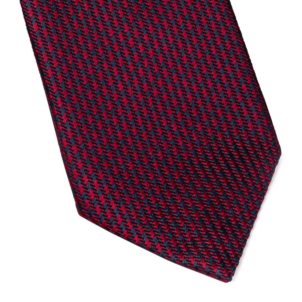 Krawat jedwabny pepitka bordowo-granatowa VAN THORN