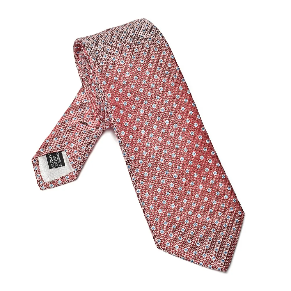 Elegancki czerwony krawat Van Thorn w błękitne kropki