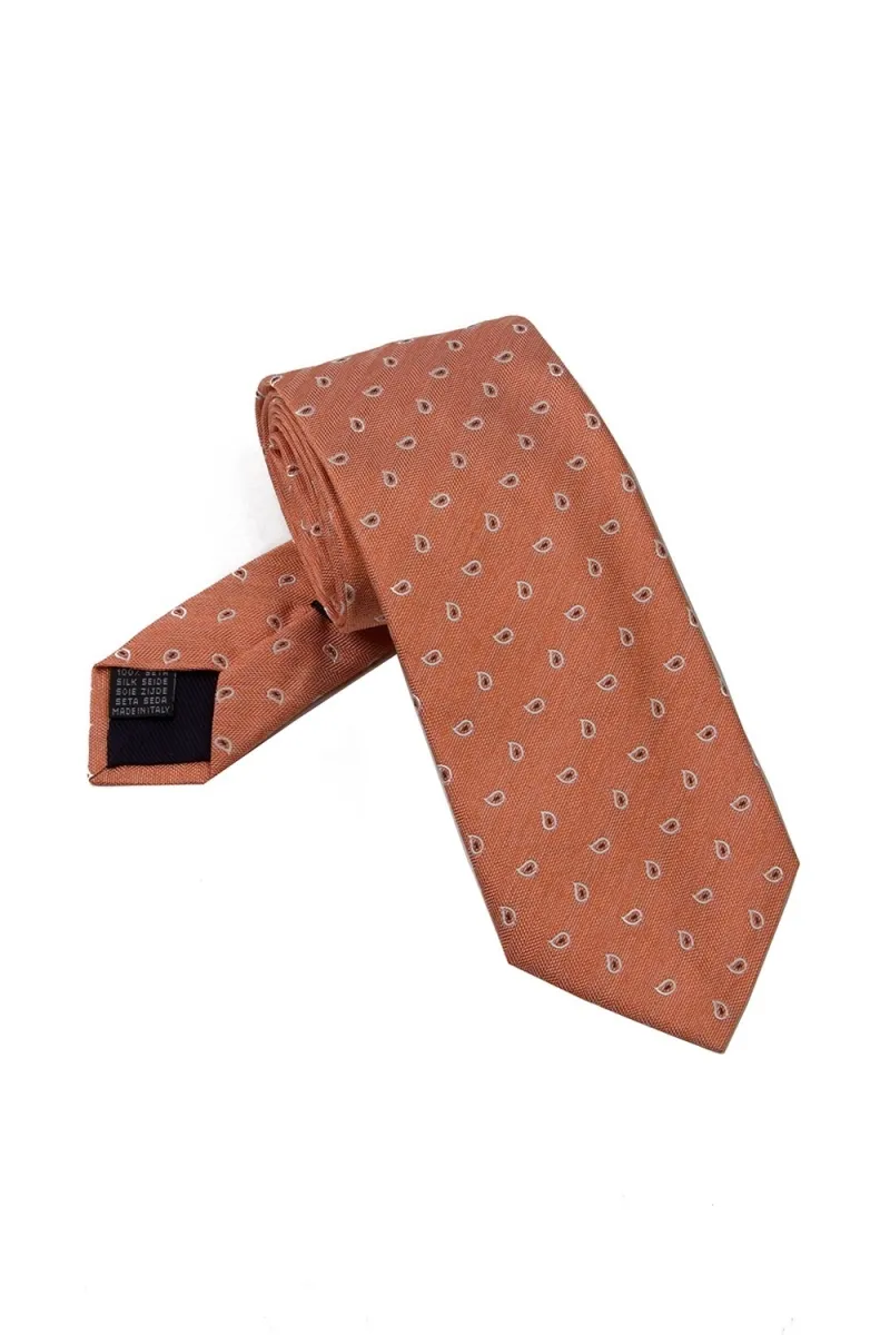 Elegancki poamarańczowy krawat jedwabny Van Thorn w białe paisley
