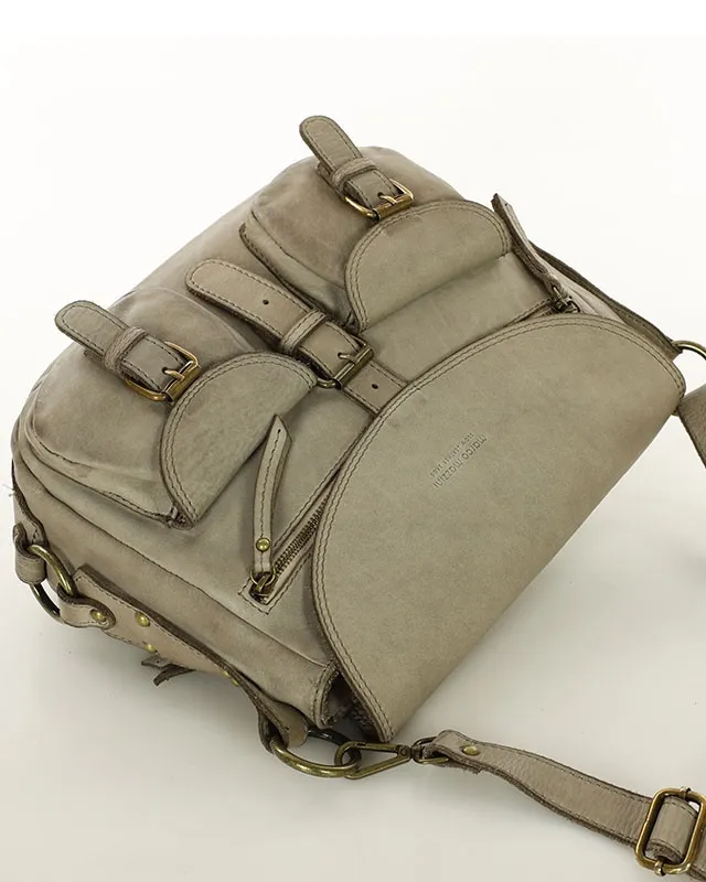 MARCO MAZZINI Skórzana torebka listonoszka z kieszeniami safari handmade bag beż