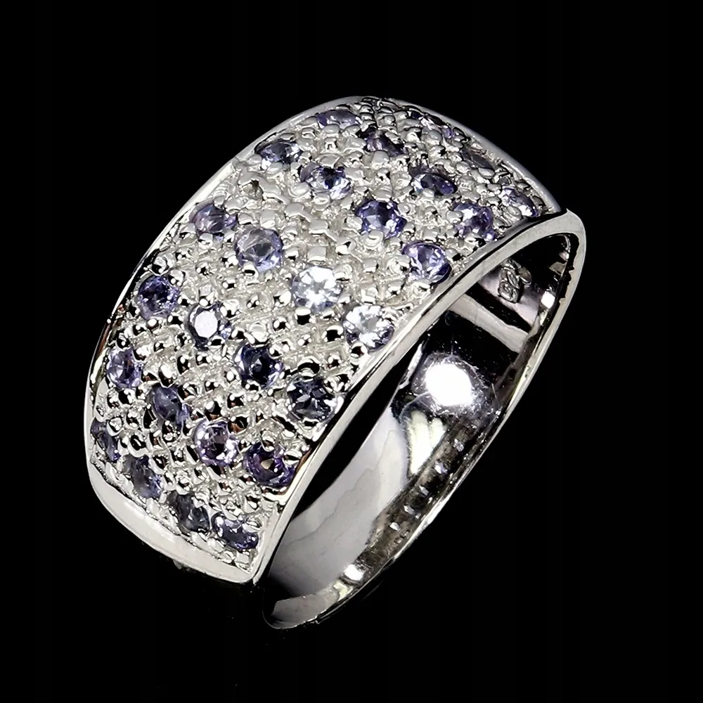 Pierścionek r 18 elegancki naturalne tanzanity srebrny 925