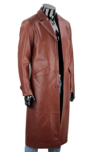 Długi płaszcz skórzany męski z brązowej skóry naturalnej DORJAN