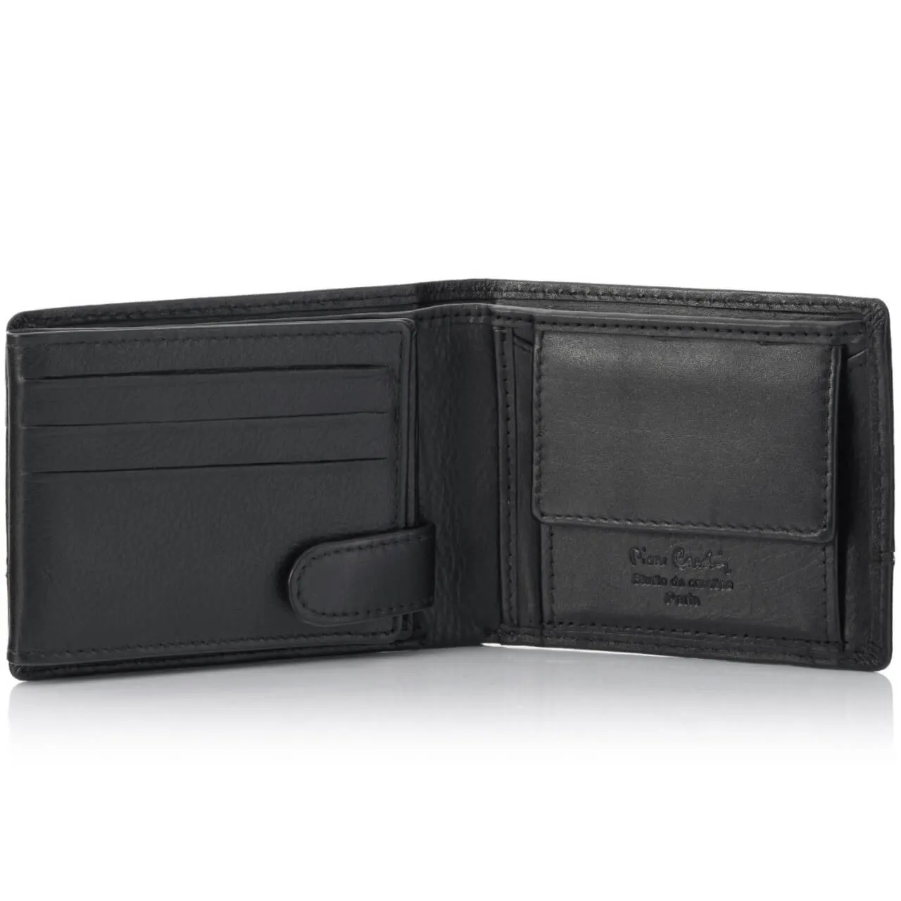 Elegancki portfel męski zapinany YS605 323A z RFID – czarno-czerwonyMiłośników eleganckich dodatków, które wspaniale prezentują się niezależnie od okazji, z pewnością zachwyci ten model portfela skórzanego francuskiej marki Pierre Cardin.Pojemny portfel z zapięciem o wymiarach 11 cm x 8,5 cmPrezentowany portfel to model klasyczny, wykonany ze skóry naturalnej z ozdobnym elementem na okładce – paskiem w kolorze czerwonym lub czarnym. Stosunkowo niewielkie rozmiary sprawiają, że wygodnie leży w dłoni i mieści się do każdej kieszeni spodni lub marynarki. A układ zakładek i duża ilość kieszonek przekładają się na dużą pojemność i funkcjonalność tego modelu. Portfel jest orientacji poziomej, z wygodnym zapięciem na zatrzask.Portfel posiada dwie przestronne kieszenie na banknoty, zapinaną na zatrzask bilonówkę, aż 9 miejsc na karty płatnicze i 4 dodatkowe kieszenie na dokumenty, w tym dwie osiatkowane (nie mieszczą dowodu rejestracyjnego).Technologia RFID dla ochrony danychTen model portfela posiada membranę RFID, która blokuje fale radiowe i uniemożliwia odczyt z kart dotykowych.