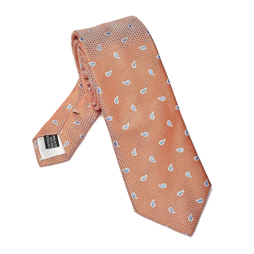 Elegancki pomarańczowy krawat Van Thorn w błękitne paisley