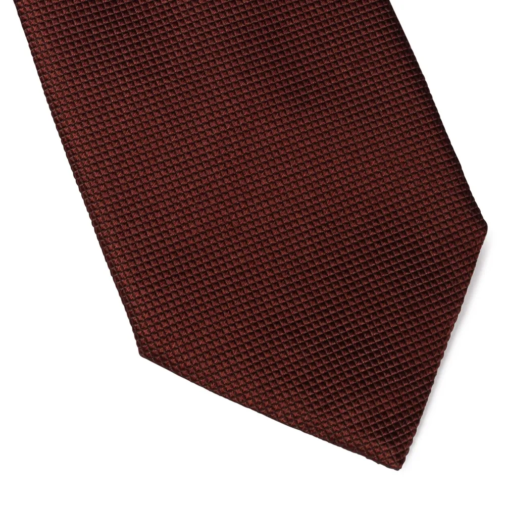 Długi krawat jedwabny brąz ze strukturą VAN THORN