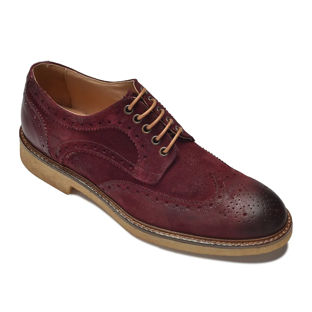 Eleganckie brązowe buty skórzane z niebieskim zamszem Te piękne i eleganckie brązowe półbuty pochodzą z portugalskiej manufaktury Centenario oraz nadają męskiej stylizacji niezwykłego charakteru. Luksusowy model został wykonany ręcznie w konstrukcji goodyear welted, dzięki czemu mają konstrukcję ramową. Nie zabrakło również warstwy korkowej w skórzanej podeszwie, dzięki której buty są bardzo wygodne i bez problemu dopasowują się do stopy. Ponadczasowa elegancja na mniej formalne okazje Proponowane półbuty z zamszowym wykończeniem to oksfordy z cielęcej skóry w kolorze koniakowym i z medalionem na noski. Przyszwa w tym modelu została wykonana z niebieskiego zamszu, co dodaje mu oryginalności i zapewnia połączenie eleganckiego stylu i odrobiny swobody bez zbytniej sztywności. Dzięki temu obuwie Centenario możesz nosić zarówno z jeansami, jak i ze sportowym garniturem. Równie dobrze sprawdzą się z zestawem koordynowanym.