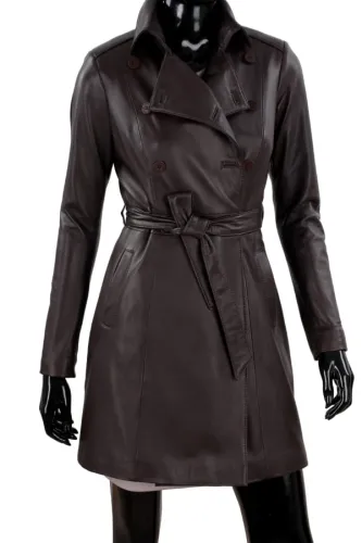 ESTZ450 - płaszcz skórzany damski z asymetrycznym zapięciem DORJAN