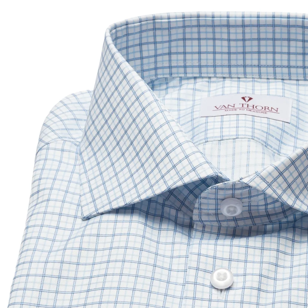 Koszula VAN THORN biała w błękitną kratkę szyta na zamówienie 39
