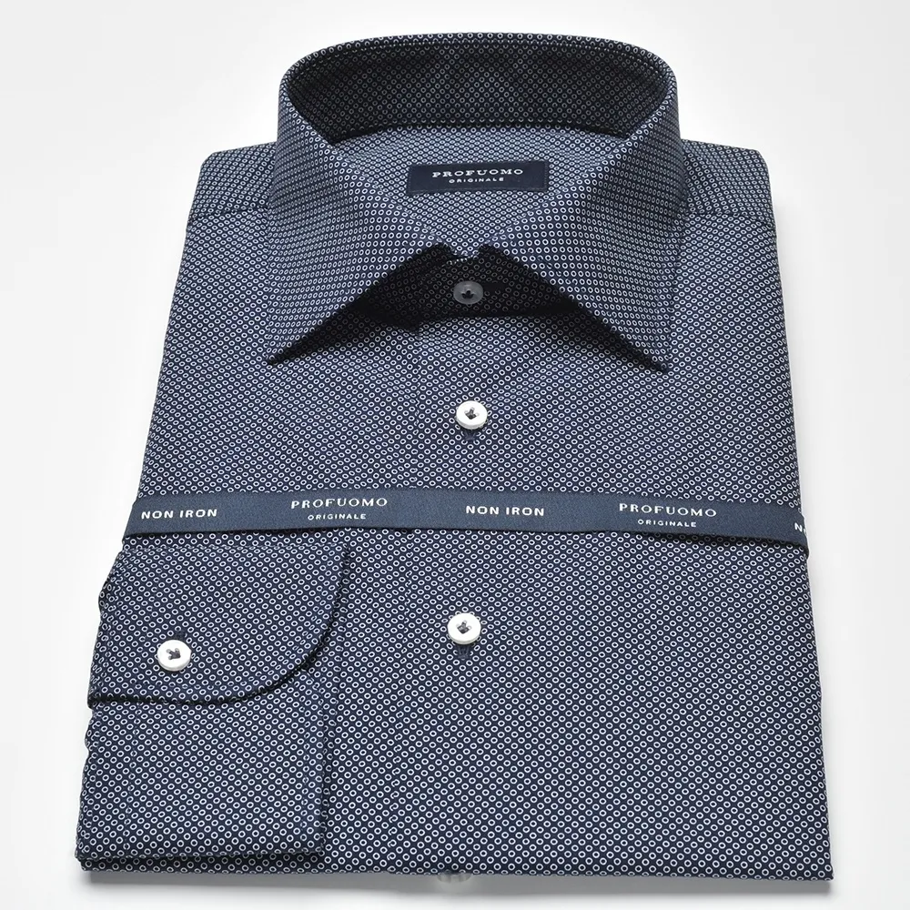 Granatowa koszula męska (Normal Fit) w białe kółeczka 38