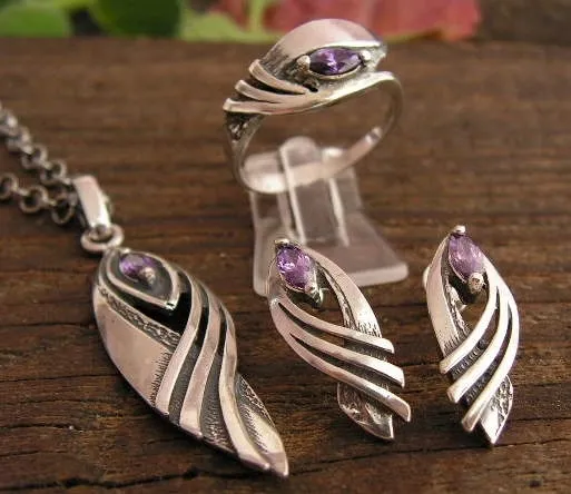 FABIOLA – srebrny komplet z rubinami