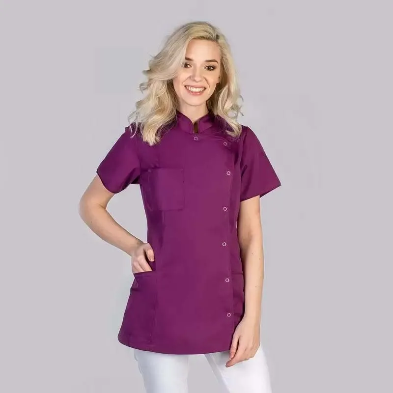 Polecamy Paniom ceniącym sobie połączenie klasyki i wygody.-krótkie rękawy-kobieco taliowany-asymetryczny dekolt-zapinanie na napy-dwie boczne kieszonkiUwaga: na życzenie Klientek fartuchy zostały wytaliowane.Nie zachodzi zatem konieczność zamawiania mniejszego rozmiaru.Tkanina: bawełna/poliesterTemperatura prania: 40° CStruktura tkaniny oraz jej skład to gwarancja elegancji i komfortu podczas użytkowania.Walory użytkowe:- wytrzymałość na tarcie i uszkodzenia mechaniczne- niska kurczliwość- trwałość barwTkanina przebadana przez Instytut Włókiennictwa.Spełnia normy: PN-P-84525, PN-90/P-82008, PN-EN 340