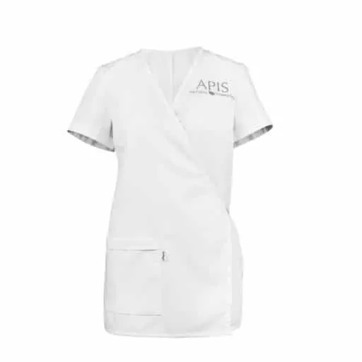 Fartuszek kosmetyczny z logo Apis w kolorze białym.