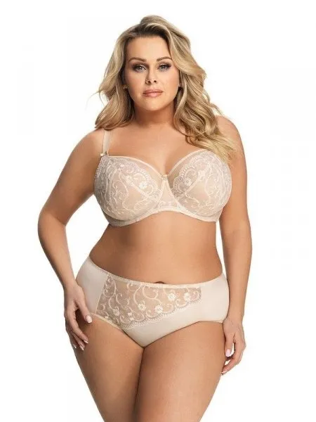 Figi o kroju typu brazyliany z delikatnej siateczki zdobionej efektownym haftem – biodra i tył z gładkiej mikrofibry.Skład: 91% poliamid, 5% bawełna, 4% elastan…
