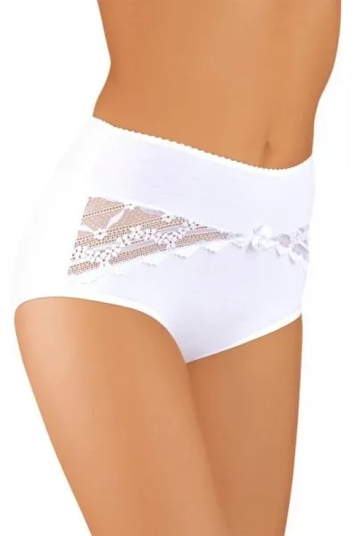 Bawełniane figi damskie z dodatkiem elastanu. Przód ozdobiony koronkową wstawką….