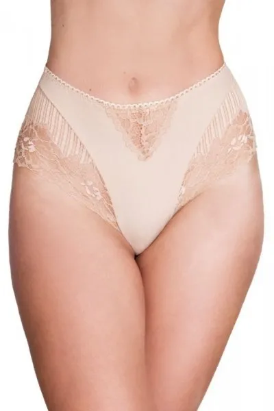 Virgilia Figi z wyższym stanem.Wstawki z bogato zdobionych koronek.Dostępne w trzech kolorach.Zaprojektowane i uszyte w Polsce.Skład surowcowy: Poliamid 85%, Elastan 15%Szerokość w talii (cm): S-27, M-29, L-31, XL-33Szerokość dołu (cm): S-37, M-39, L-41, XL-43Długość całkowita (cm): S-30, M-31, L-32, XL-33Długość boku (cm): S-13, M-14, L-15, XL-16…