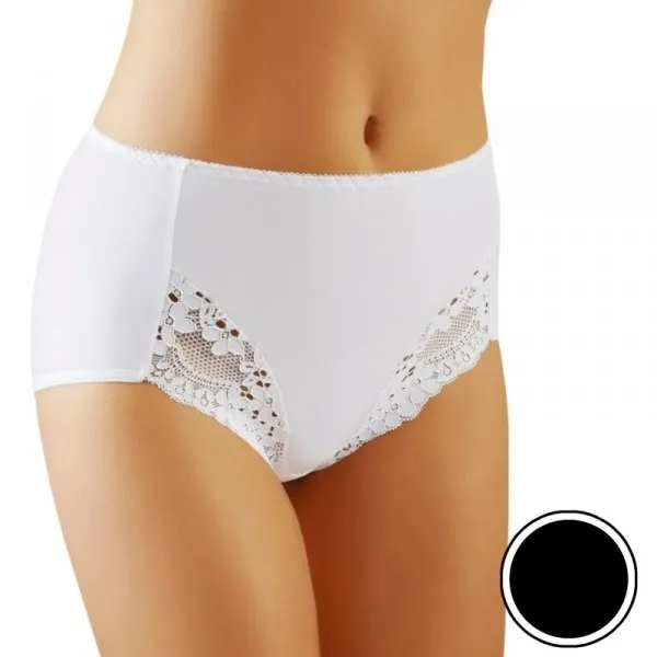 Wygodne i komfortowe figi damskie z wysokiej jakości bawełny i dodatku elastanu 6%. Górna linia z ażurowej koronki o kwiatowym motywie. Wysokie, zabudowane na biodrach…