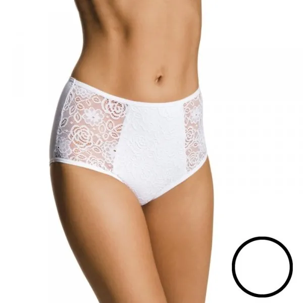 Figi damskie wykonane z bawełny, przód ozdobiony elastyczną koronką. Wysokie, mocno zabudowaneSkład: 94% bawełna, 6% elastan…