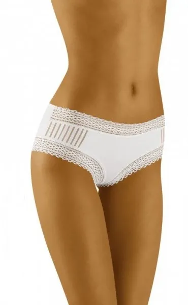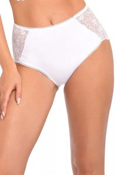 Klasyczne figi damskie- pełny krój- lekko zabudowane boki- z delikatnej koronki i mikrofibry Skład: 76% poliamid, 19% elastan, 5% bawełna…