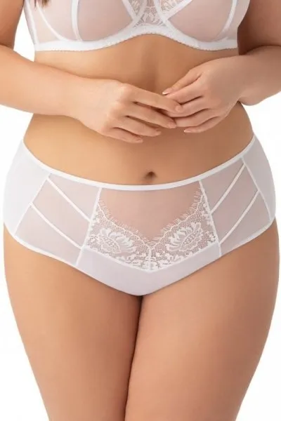Figi damskie typu braziliany- przód zdobiony haftem i złotym przeszyciem- tył z podwójnej siateczki i koronkiSkład: 90% poliamid, 7% elastan, 3% poliester…