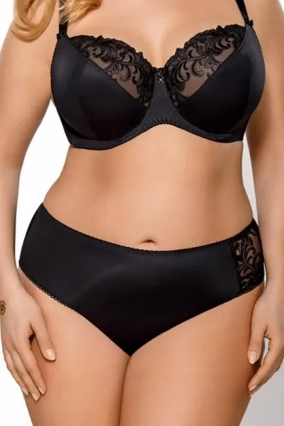 Klasyczne figi damskie uszyte z miękkiej dzianiny i koronki. Gładki przód, tył koronkowy.Skład: 60% poliamid, 20% elastan, 17% poliester, 3% bawełna…