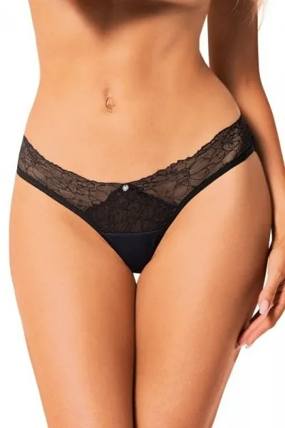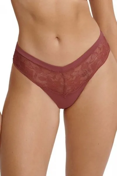 Figi damskie- z ażurowej koronki o kwiatowym motywie- u dołu mikrofibra z wytłaczanym wzorem 'plastra miodu’- tył z tiulowej siateczki i koronki Skład: 74% poliamid, 16% elastan, 10% bawełna…