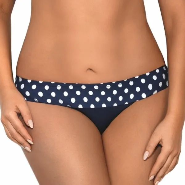 Figi kąpielowe z mikrofibry, górna linia pasa wzorzysta. Idealny komplet z biustonoszem kąpielowym SK-73 i SK-72.Skład: 80% poliamid, 20% elastan…