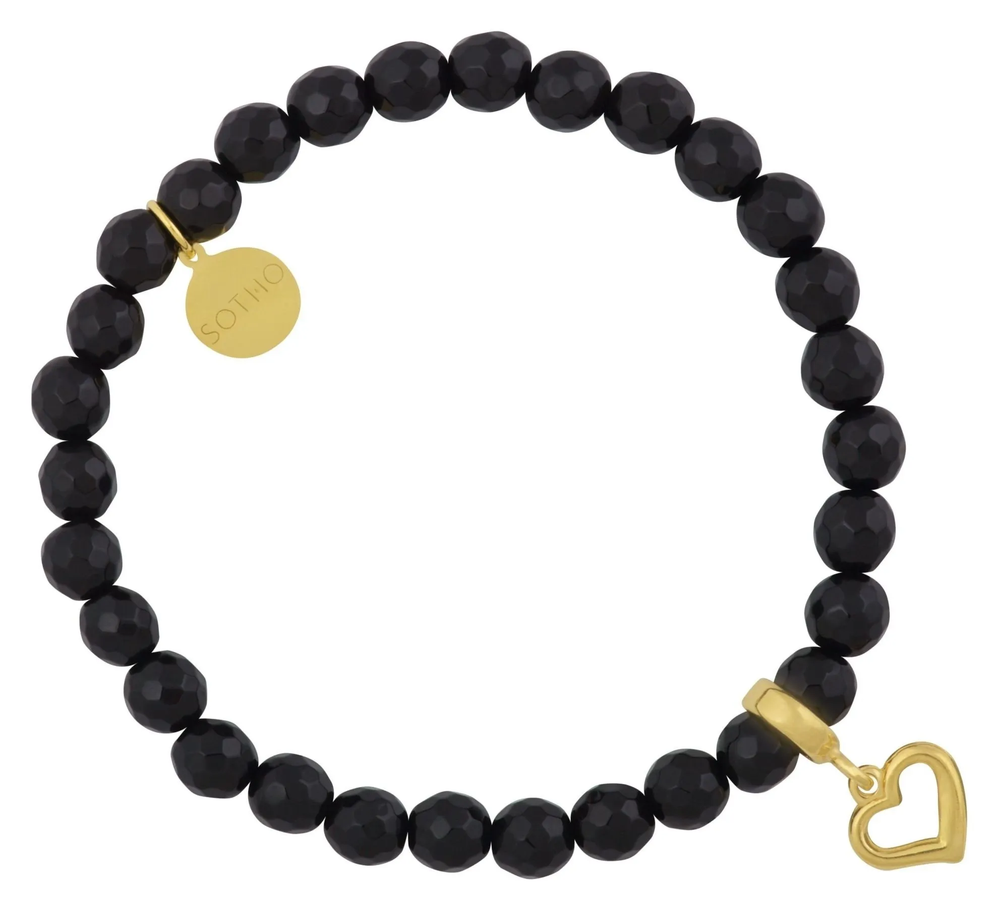 Czarna bransoletka onyks fasetowany ze złotym serduszkiem