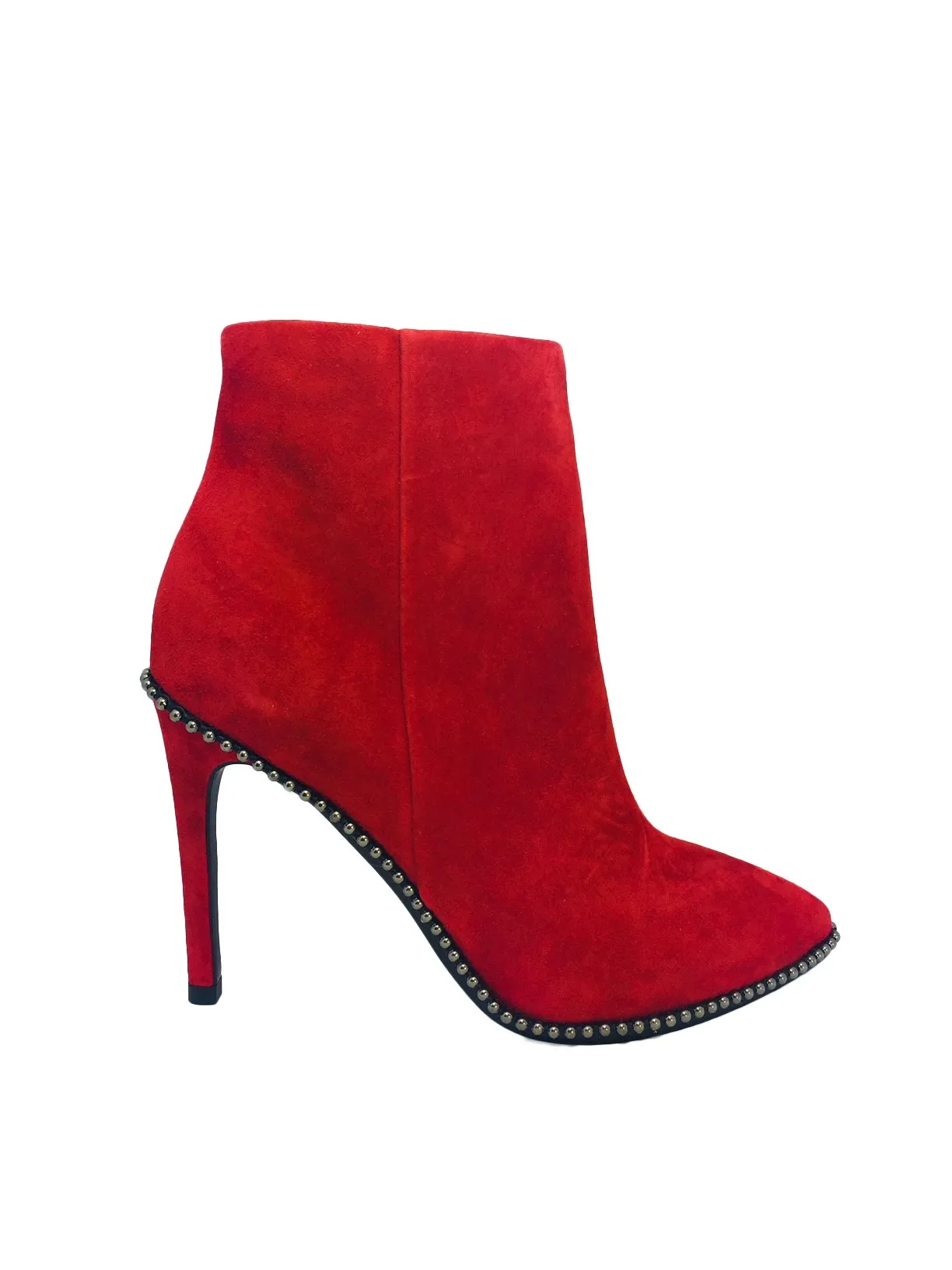 Ekstrawaganckie botki firmy Gianni Renzi. Wykonane z najwyższej jakości włoskiej skóry licowej. Cała podeszwa wokół buta ozdobiona została metalowymi detalami w kolorze srebra. Najwyższa jakość oraz perfekcyjne wykończenia sprawiają, że projekty tej marki pokochały kobiety na całym świecie. Materiał: 100% skóra cielęca, zamszowa Wkładka: 100% skóra cielęca Wysokość obcasa: 9 cm