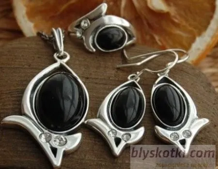 Piękny srebrny zestaw, posiadający niepowtarzalne wzronictwo przykuje uwagę każdego i sprawi, że poczujesz się jeszcze piękniejsza. W centralnym miejscu każdego elementu wkomponowany został bursztyn(wymiary: 6 x 8mm). Wymiary motywu zdobniczego kolczyków i bransoletki to 17x20mm. Długość bransoletki 19cm. Wymiar wisiora to 32x47mm. Srebro próby 925. W skład zestawu wchodzą kolczyki, bransoletka, wisior oraz pierścień. Kupując w komplecie oszczędzasz.