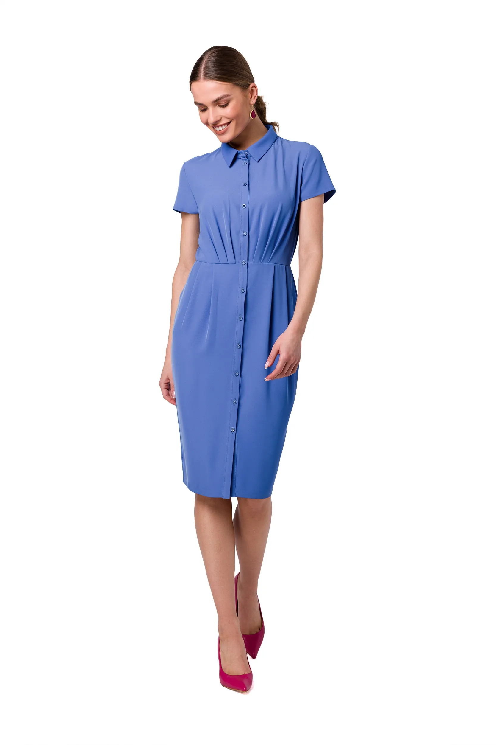 Gładka Szmizjerka z Krótkim Rękawem - Niebieska